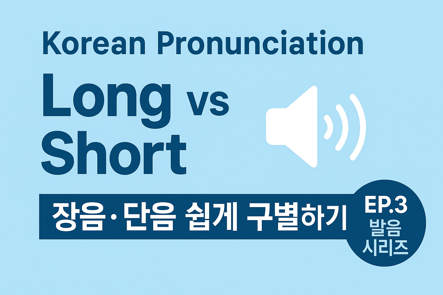한국어는 영어처럼 철자에 장음 표시가 없기 때문에, 글자만 보고는 장음인지 단음인지 알기 어렵습니다. 그래서 한국어 학습에서는 듣기와 말하기 연습을 통해 자연스럽게 익히는 과정이 매우 중요합니다.